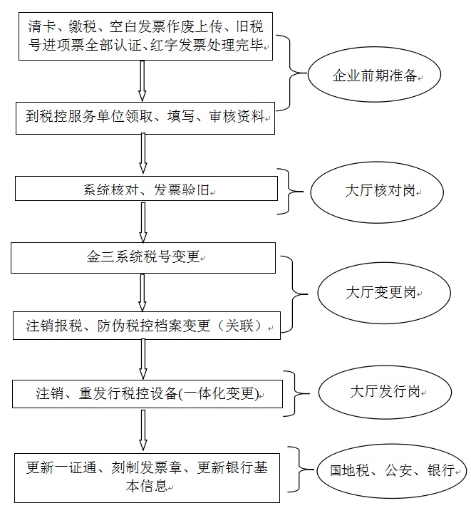 (1)稅控設備; (2)企業公章; (3)一證通;(4)營業執照副本原件及復印件1份;(5)變更登記表格(需到稅控服務單位領取);(6)已做過實名制認證的辦稅人員身份證。